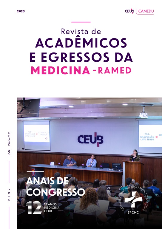 A Revista de acadêmicos e egressos da Medicina - RAMED é um periódico científico na área médica com objetivo de difundir e fomentar a iniciação científica pautada na melhor evidência, seguindo critérios internacionais de pesquisa realizado por alunos e egressos do curso de medicina orientado por seus professores. Neste espaço divulgamos os trabalhos acadêmicos de interesse da RAMED nos eixos temáticos de acordo com projeto pedagógico do curso de medicina do CEUB. O leitor tem a possibilidade de consultar no Repositório Institucional do CEUB o material completo do trabalho desenvolvido.